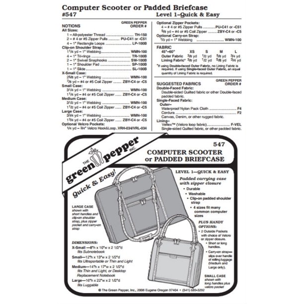 Computer Scooter Or Padded Briefcase Student Bag Tote 547 Sewing Pattern Pattern Only Walmart Com
